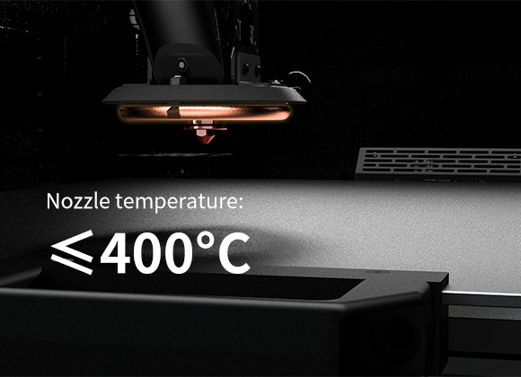 最大400℃の温度に対応する堅牢なノズルを採用。標準フィラメントから