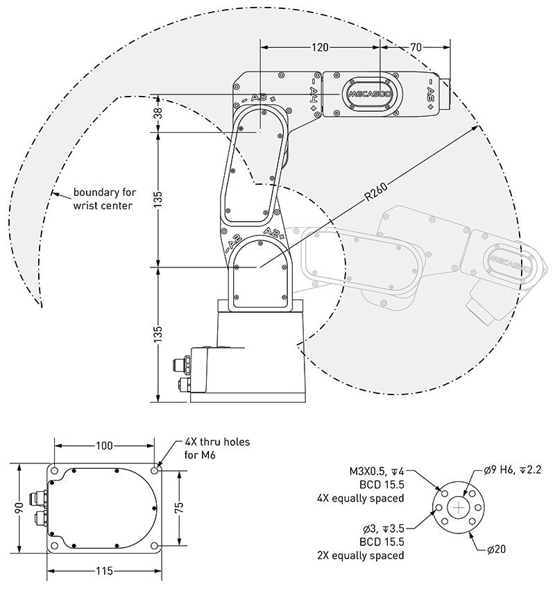 | - 関節 5 | -115° ~ +115° | ||